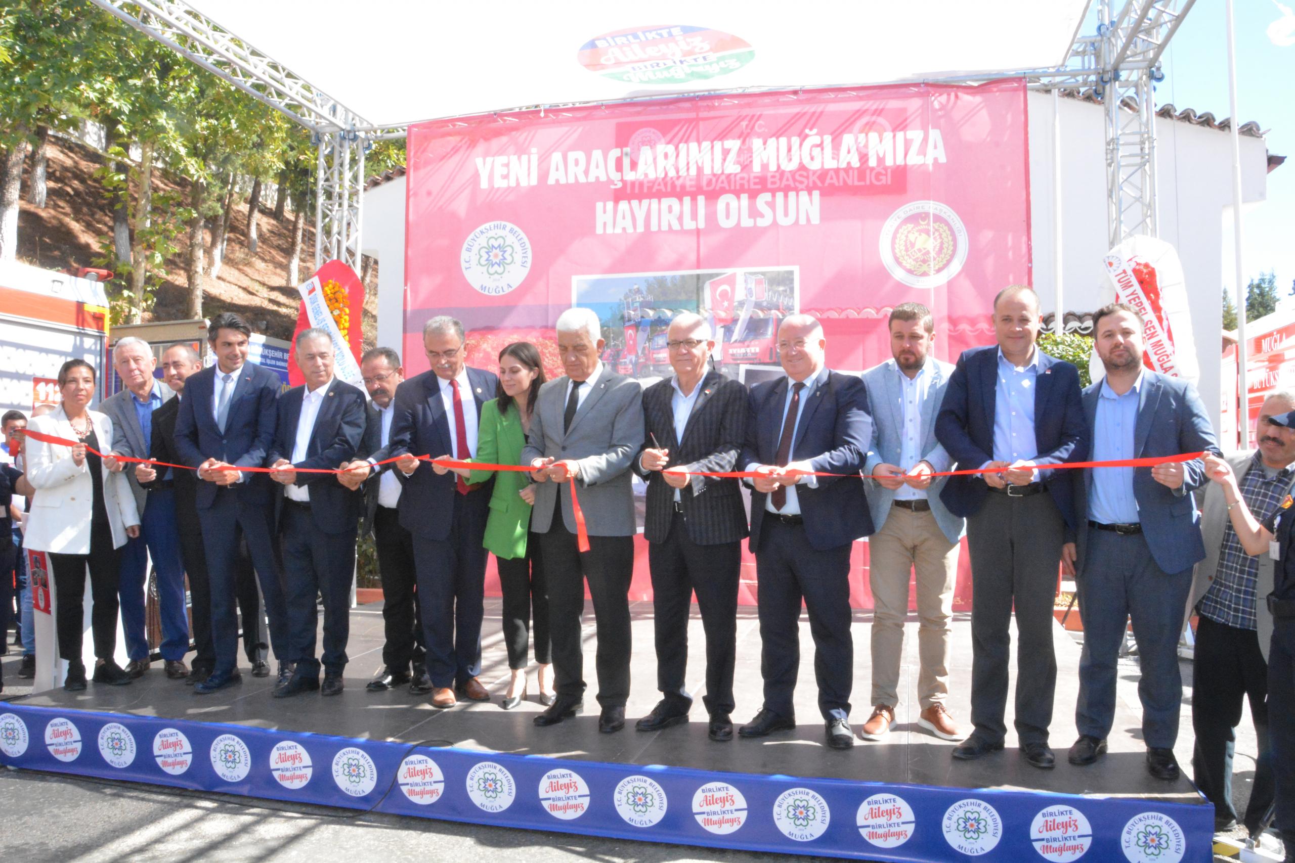 Muğla Büyükşehir Belediyesi’nin 36 Milyon 369 bin 485 TL yatırımla aldığı 27 yeni itfaiye aracı düzenlenen törenle hizmete başladı. İtfaiye Dairesi Başkanlığı’nda düzenlenen törene Muğla Büyükşehir Belediye Başkanı Dr. Osman Gürün, CHP Parti Meclis Üyesi Gizem Sayar Özcan, CHP Muğla Milletvekilleri Süleyman Girgin ve Suat Özcan, CHP İl Başkanı Adem Zeybekoğlu, İYİ Parti Muğla İl Başkanı Davut Cumhur Akmeşe, Saadet Partisi İl Başkan Vekili Salih Çiftçi, CHP Menteşe Belediye Başkanı Bahattin Gümüş, CHP Menteşe İlçe Başkanı Mustafa Aytaç Kavak, CHP Ula İlçe Başkanı Hüseyin Özcan, Saadet Partisi Menteşe İlçe Başkanı Fatih Salih Mehmet Kocabıyık, vatandaşlar ve muhtarlar katıldı.