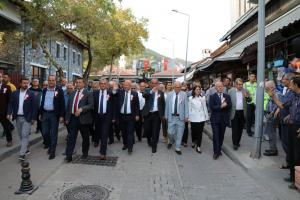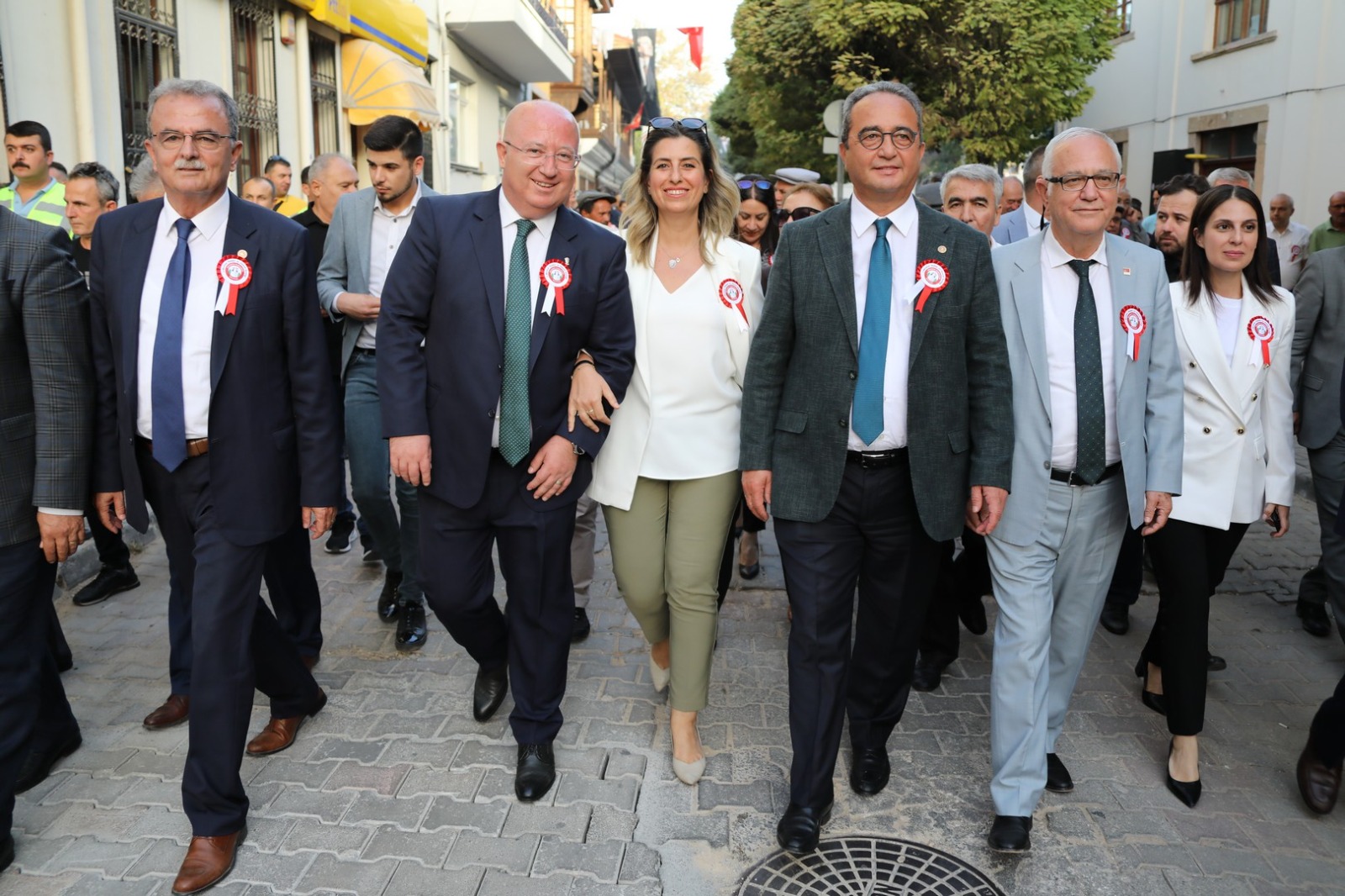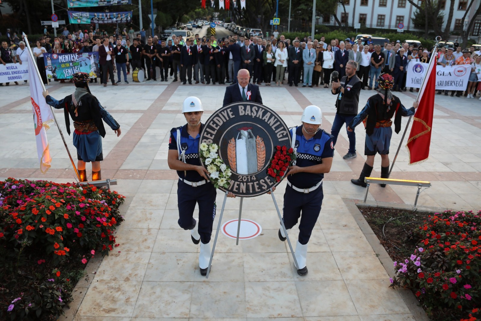 Cumhuriyet Halk Partisi Genel Başkan Yardımcısı Bülent Tezcan, konuşmasına umudumuzu yitirmeyeceğiz sözleriyle başlayarak şunları söyledi:, “Türkiye’nin büyük zenginliğini güçlü bir şekilde harekete geçirebilmek ve Türkiye’yi Dünyanın sayılı müreffeh ülkeleri arasına sokabilmek için Mustafa Kemal Atatürk’ün çizdiği yolda hayatta en hakiki mürşit ilimdir deyip çalışmaktan ayrılmayacağız. Ele tutunacağız, başaracağız ve Türkiye’yi dünyanı en zengin ülkeleri ara sına sokacağız. Bunun için üretim, eğitim, adalet ve sosyal devlet. Bu 4 ilkeden şaşmayacağız. Üreteceğiz, gençlerimizi gelecek kuşaklarımızı dünyayla yarışan bir güçlü eğitime tabi tutacağız. Eğitimi yeni baştan güçlü bir şekilde ele alacağız. İyi bir hukuk sistemi, güçlü bir adalet düzeni ve herkese elini uzatan sosyal devleti inşa edeceğiz. Dayanışma ve gelişmenin yolu buradan geçiyor. Biraz önce Menteşe Belediyemizin hizmetlerini keyifle izledik. Yerel Yönetimlerimiz belediyeciliğin sadece alt yapı hizmeti olmadığının bilincinde. Bu bilince sahip Menteşe Belediyemizin az önce ekranda çalışmalarını izledik. Hizmetleri ile insana dokunan projeler üreten Bahattin Başkanımızı ve ekibini kutluyorum. Çok güzel hizmetler üretmiş ve bugün de çok güzel bir şenlik programı hazırlamışlar. Şenliğin hayırlı olmasını diliyor kutluyorum.” dedi. Konuşmaların ardından Baca Yakma Törenine geçildi. Genel Başkan Yardımcısı Tezcan Muğla Milletvekilleri, Belediye Başkanları ve protokol ile birlikte baca ateşini birlikte yaktı. Şenliğin ritüellerinden birisi olan barışın simgesi güvercinler gökyüzüne bırakıldı. Baca yakma töreninin ardından kortej yürüyüşü ile birlikte Cumhuriyet Meydanı Atatürk Anıtı’na çelenk sunuldu.