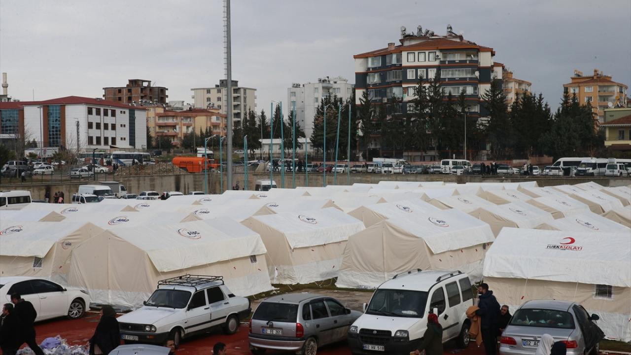 Kahramanmaraş merkezli depremlerden etkilenen Adıyaman'da, askerler depremzedeler için çadır kurdu.