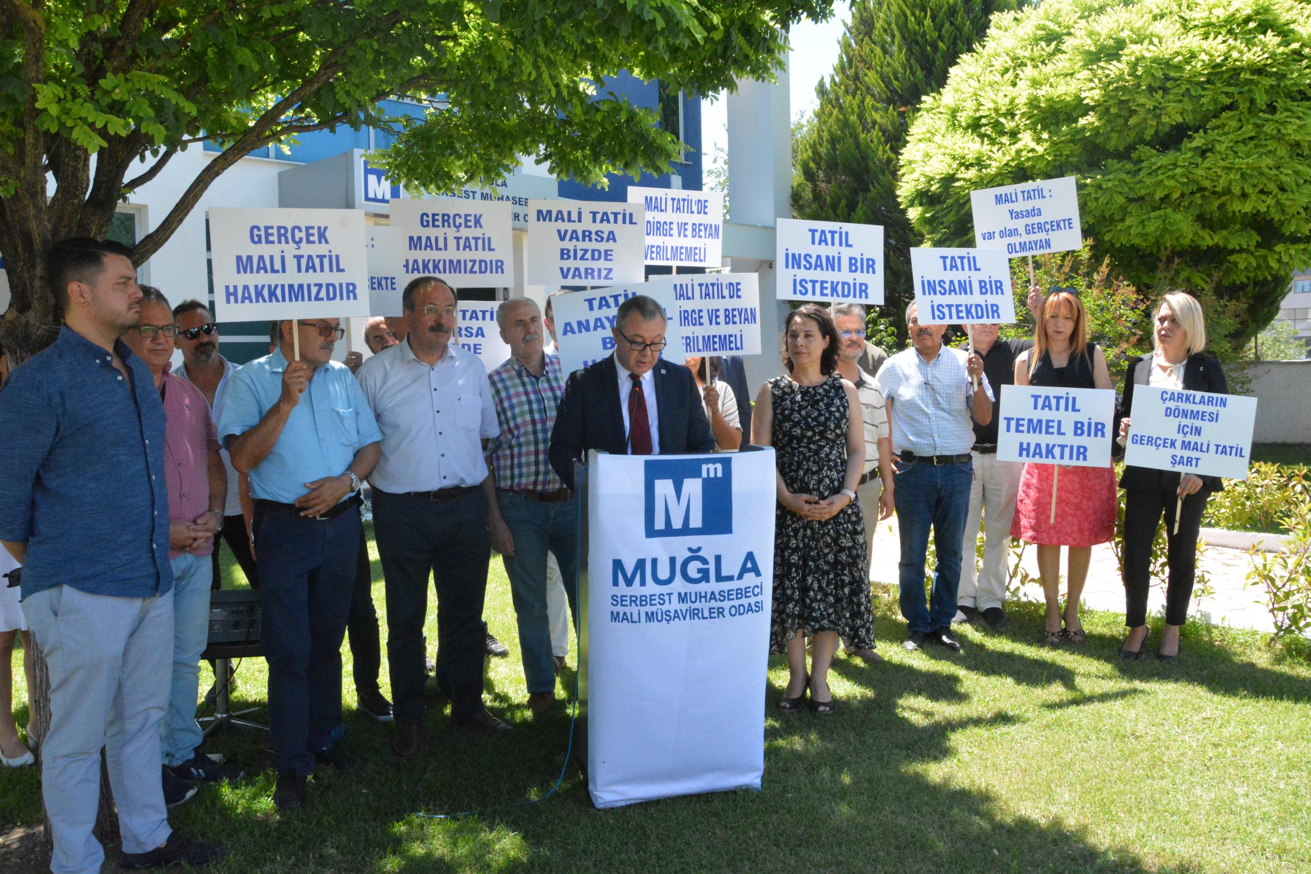 “Gerçek Mali Tatil Hakkımızdır” diyen Evran, “Mali Müşavirler üstlendikleri görevlerini yerine getirirken ailelerini ve kendilerini ihmal edebilmektedirler. Bunun sonucunda yoğun bir stres yaşamakta, hem beden hem de zihin sağlıkları açısında tehlikeli bir sarmalın içerisine girmekte,masa başında hayatlarını kaybetmektedirler.Bu nedenle sözde değil özde Mali Tatil istiyoruz. Muğla’dan yetkililere, paydaşlarımıza ve Türkiye’ye sesleniyorum: Çarkların dönmesi için gerçek mali tatil şart. Mali tatil varsa bizde varız. Biz Mali Müşavirler her türlü ağır şart içinde, Ülkemizin kalkınmasına ve gelişmesine katkı sağlamak için var gücümüzle çalıştık, bundan sonrada çalışmaya devam edeceğiz. Ancak bu çalışmalarımızın sağlıklı bir şekilde devam edebilmesi için gerçek bir ‘mali tatil’ uygulamasının acilen hayata geçmesi gerekmektedir. Gerçek Mali Tatil Hakkımızdır” şeklinde konuştu.