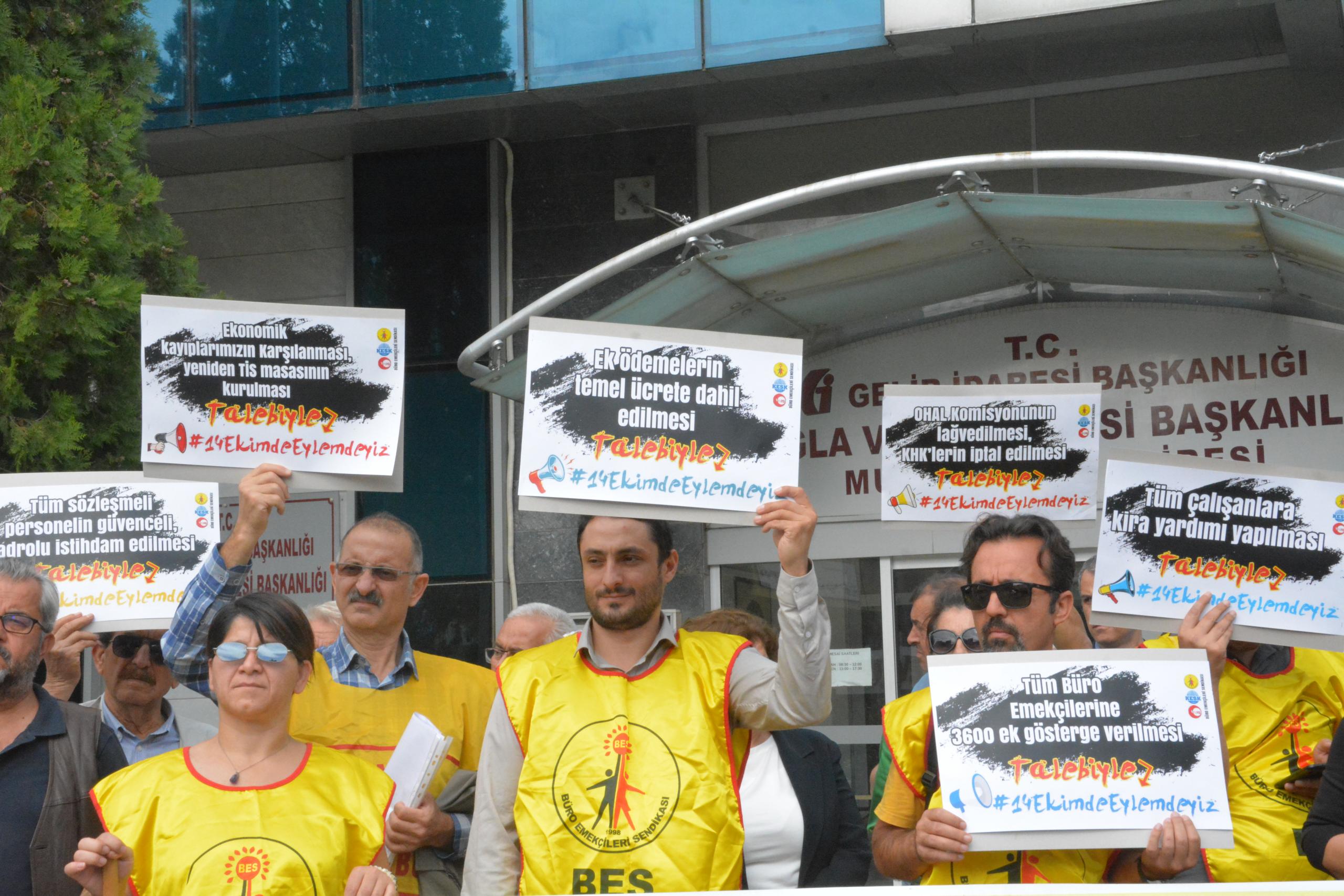 Muğla’nın Menteşe ilçesi Muğla Vergi Dairesi Başkanlığı önünde vergi itirazı için bir araya geldiklerini söyleyen BES Muğla Şube Başkanı Haluk Yılmaz Yıldırım, “Emekçilerin, küçük esnafın, çiftçinin, öğrencinin hatta işsizlerin yaşamını derinden etkileyen vergi uygulamalarına itiraz için bugün burada toplandık. Ekonomik krizin süreklilik kazandığı bir süreçte her güne zamlarla başlıyoruz, yaşam maliyetimiz her geçen gün artmaya devam ediyor. Maaş ve ücretlere yapılan görece yüksek zamlar daha elimize geçmeden buharlaşıyor. Yüksek enflasyonla birlikte üzerimizdeki vergi yükü daha da artıyor” dedi.