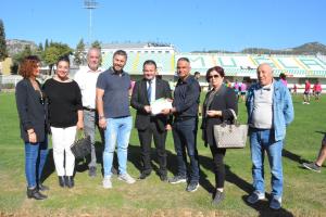 Atatürk Stadında Ermaş Muğlaspor Kulübü Başkanı Ali Çakır ve futbolcularla bir araya gelen Çay, baklava ikramında bulundu.