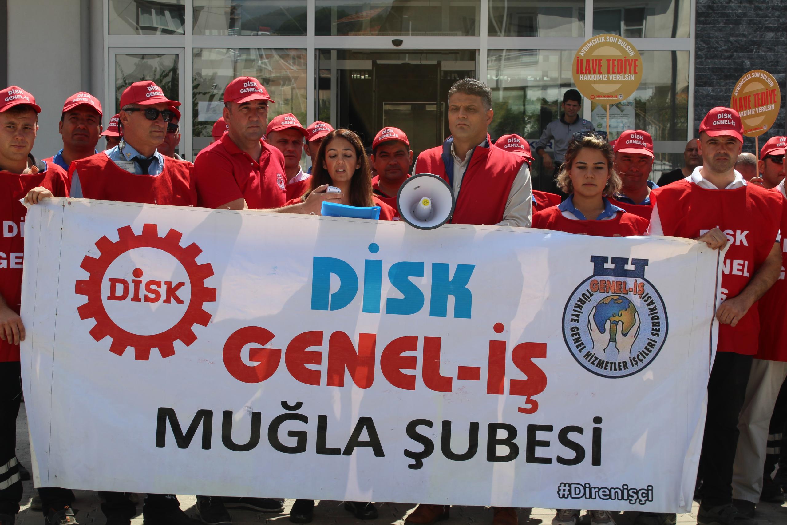 Türkiye Devrimci İşçi Sendikaları Konfederasyonu (DİSK) Genel-İş Sendikası Muğla Şubesi,696 KHK’nın kaldırılması, zorunlu emekliliğe son verilmesi ve gerçek kadro taleplerine ilişkin basın açıklaması yaptı.