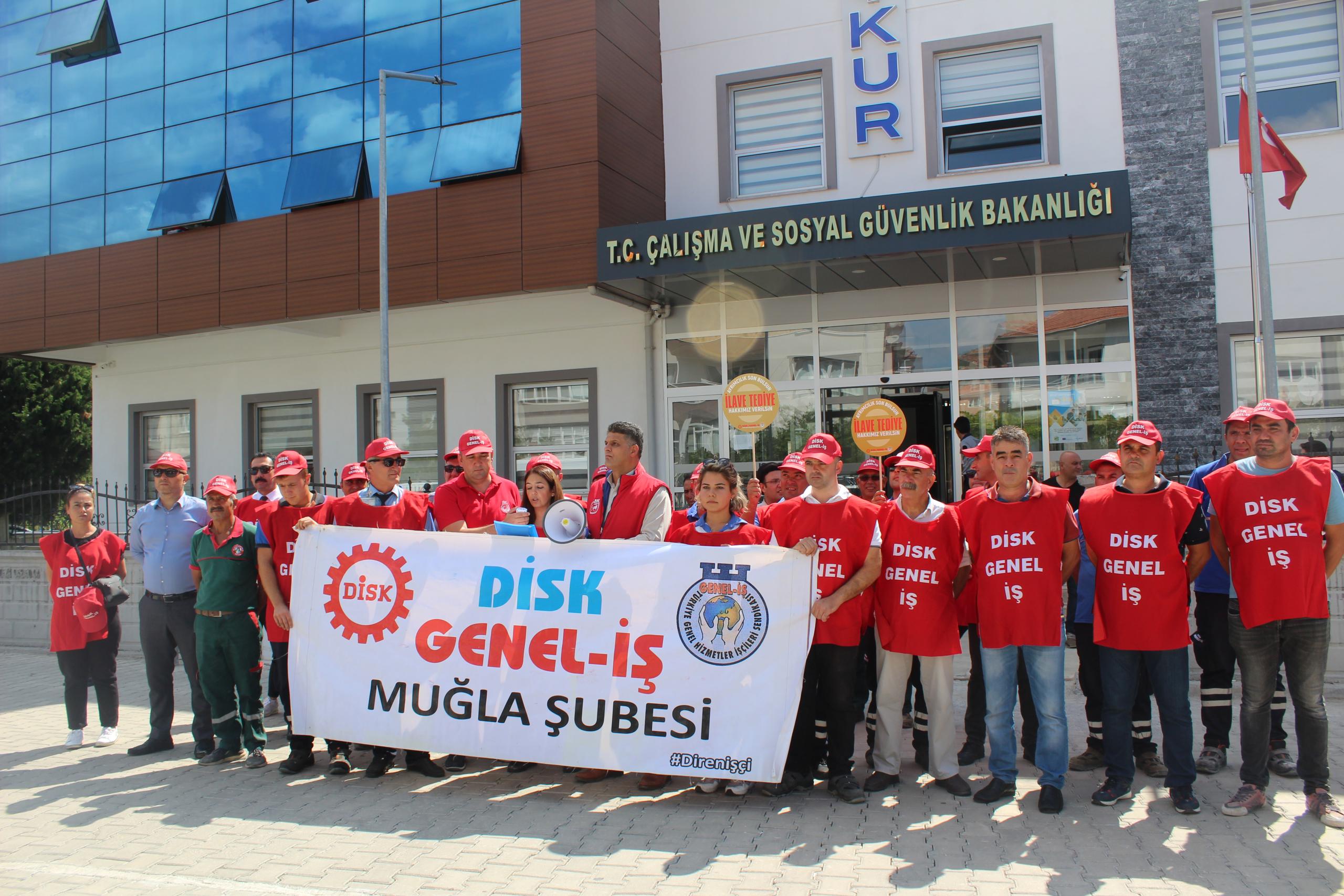 Muğla İş-Kur İl Müdürlüğü önünde yapılan basın açıklamasında, “kadro bizimdir, bizim olacak”, “inadına sendika, inadına DİSK” sloganları atıldı. Basın açıklamasına DİSK/Genel-İş 1’Nolu Şube Başkanı Uzay Kocabaş, 2’Nolu Şube Başkanı Yücel Avcı ve sendika üyeleri katıldı.