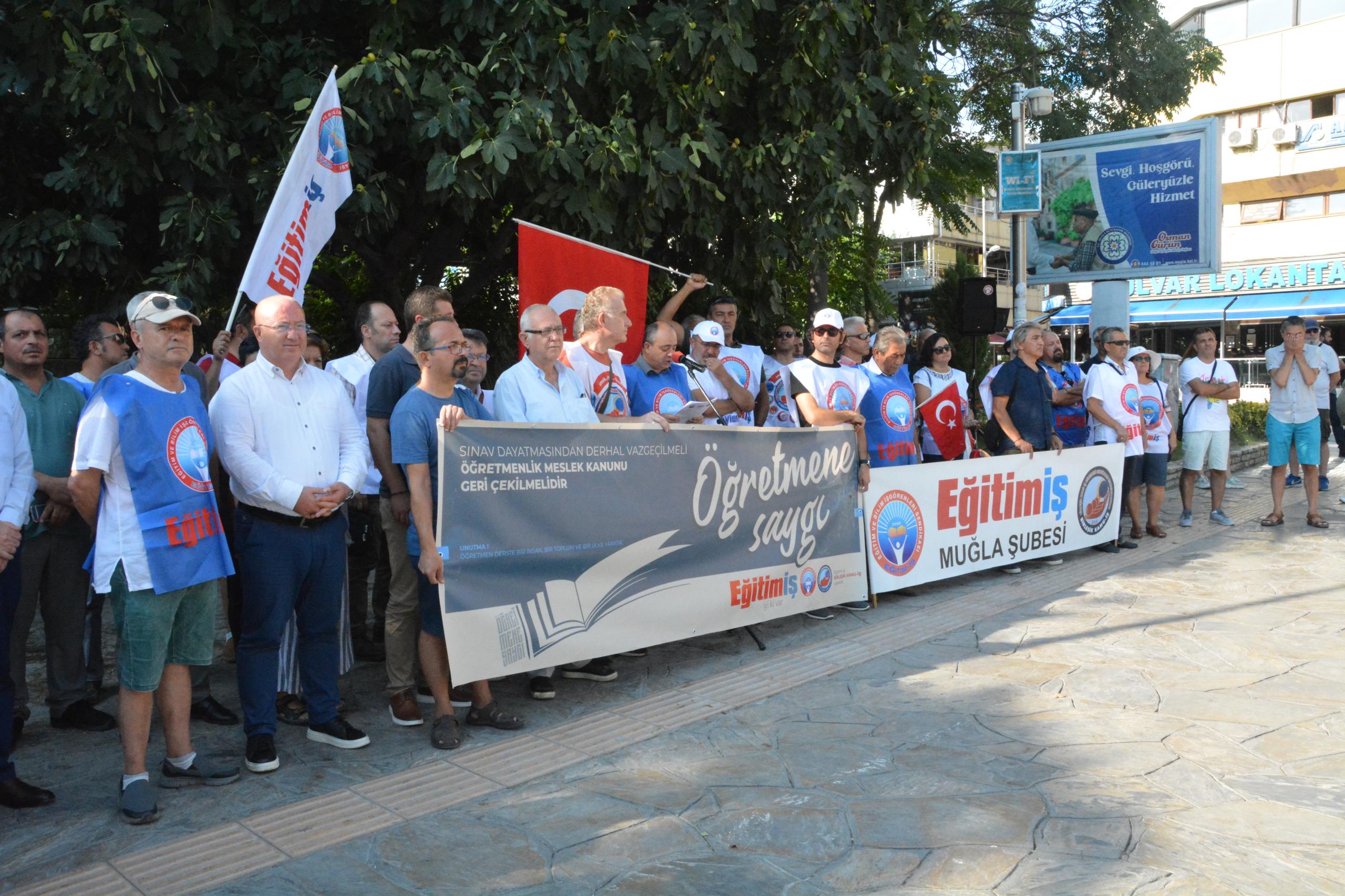 Eğitim İş Muğla Şubesi, Sınırsızlık Meydanı’nda MKYK üyesi Şenol Eyüboğlu’nun da katılımıyla ‘Öğretmene Saygı’ açıklaması yaptı.