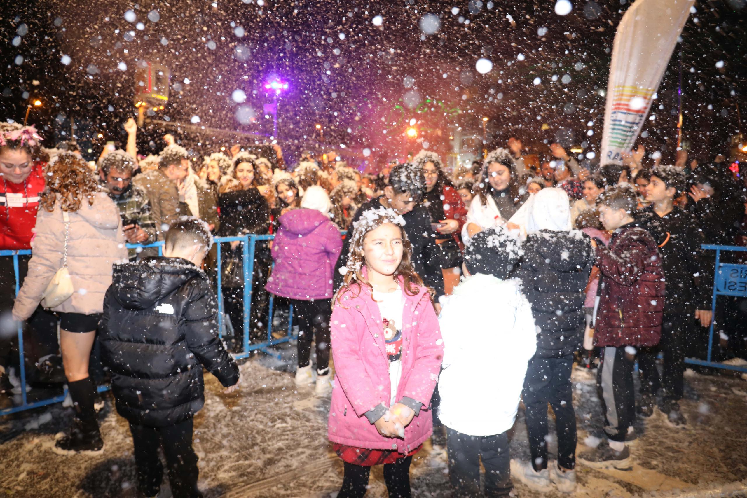 2023’e 30 saniye kala meydanı dolduran binlerce Gece Yolcuları grubuyla birlikte hep bir ağızdan geri sayım yaptı. Saatler 24.00’a geldiğinde ise meydandaki coşku yapay karla birlikte doruğa ulaştı. Bir anda beyaza bürünen vatandaşların mutluluğu görülmeye değerdi.