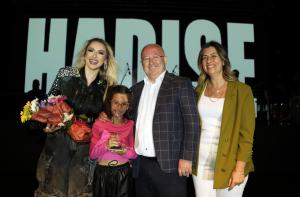 Başkan Gümüş konuşmasının ardından şarkıcı Hadise’ye plaket ve çiçek takdim etti.
