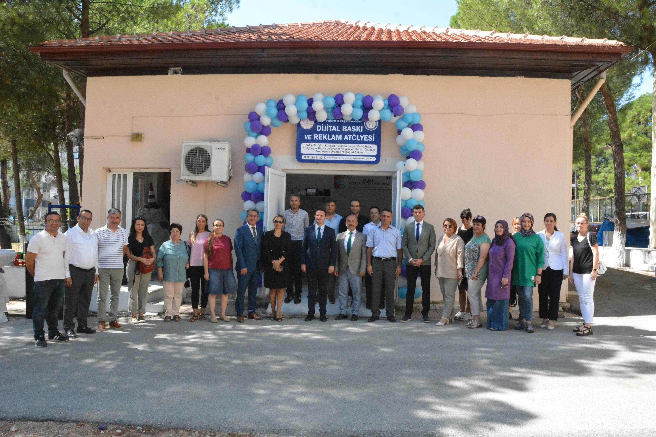 Muğla’da pandemi döneminde cerrahi maske üretimiyle öne çıkan Menteşe Zübeyde Hanım Mesleki ve Teknik Anadolu Lisesinde dijital baskı ve reklam atölyesinin açılışı yapıldı.