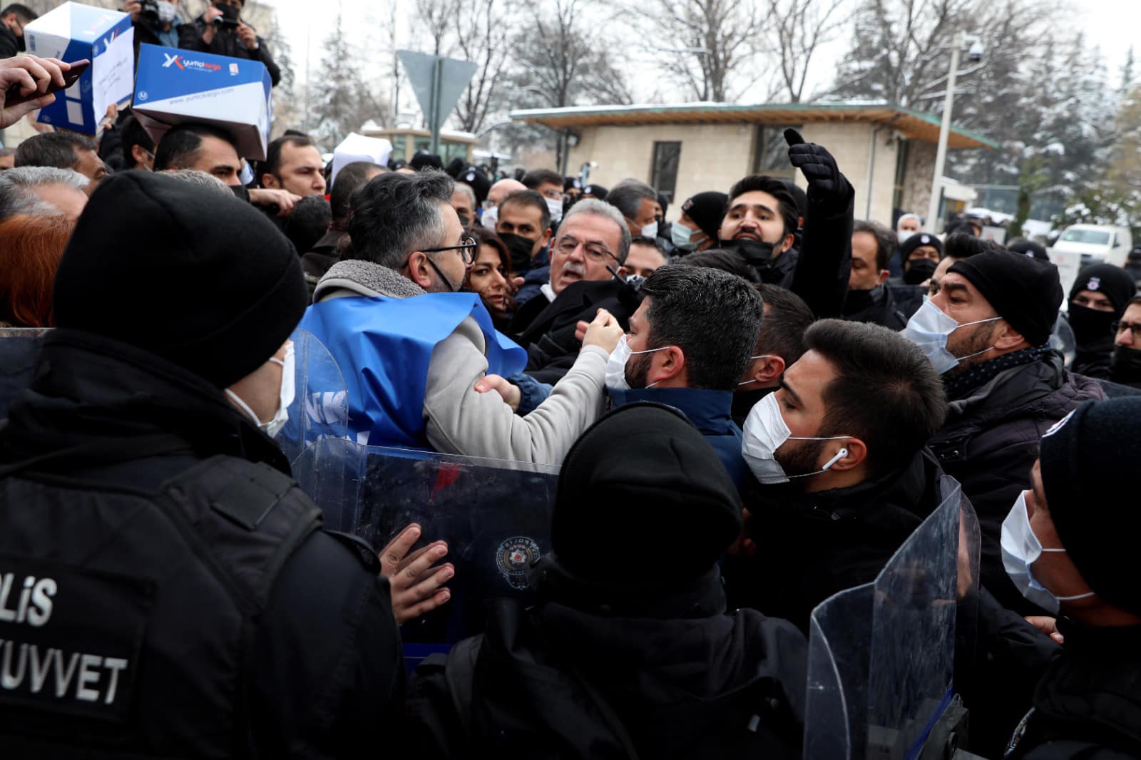 Fakat öğretmenlerin basın açıklaması yapması ve meclise dilekçe vermesi polis ekipleri tarafından engellendi. Milletvekili Girgin’in de içinde bulunduğu toplulukla polis ekipleri arasında arbede yaşandı.
