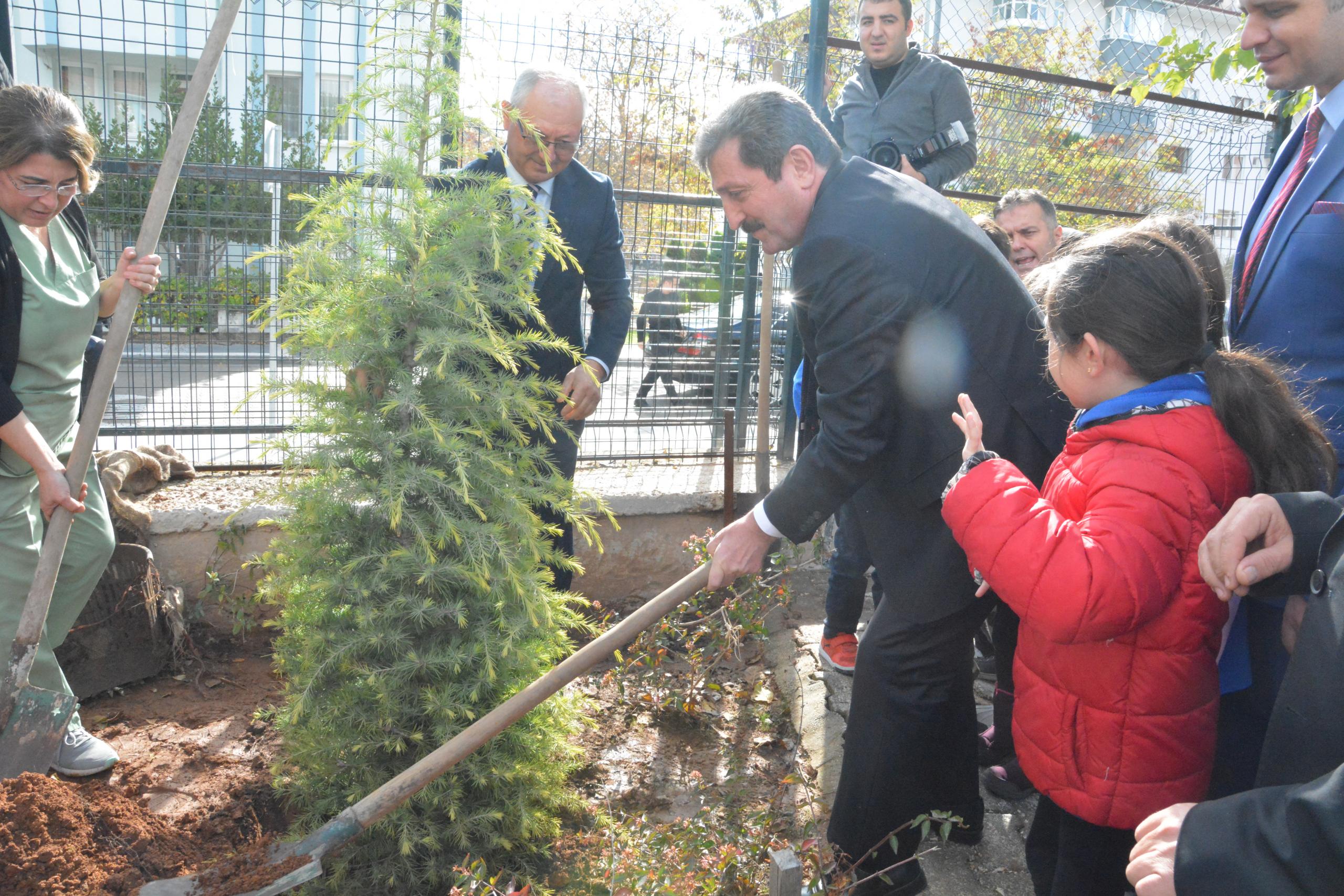 Okul bahçesinde fidan dikimiyle program son buldu.