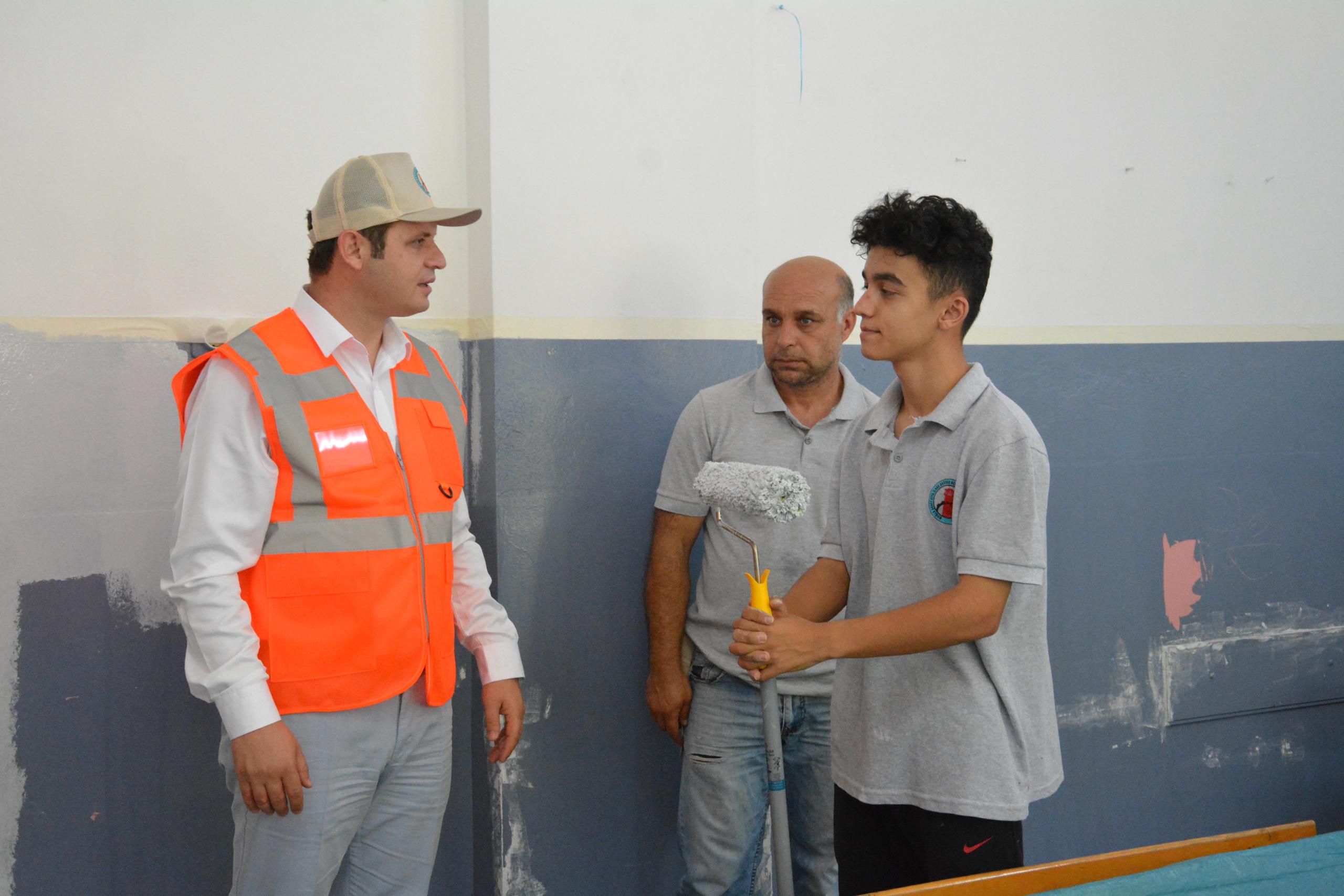 Projede yer alan Şehbal Baydur İlk/Ortaokulunda da iyileştirme çalışmaları tamamlanmak üzere.