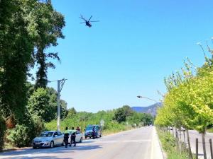 Muğla İl Jandarma Komutanlığı Trafik Tescil ve Denetleme Şube Müdürlüğü ekipleri, Kurban Bayramı trafik tedbirleri kapsamında Ortaca-Dalyan karayolunda havadan trafik denetimi yaptı.