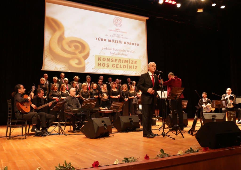 Muğla İl Milli Eğitim Müdürlüğü koordinesinde Menteşe Halk Eğitimi Merkezi tarafından hazırlanan “Şarkılar Bizi Söyler Biz de Şarkı Söyleriz” Türk Sanat Müziği Konseri Muğla’da dinleyicileriyle buluştu. Her yaş ve meslek grubundan kursiyerlerden oluşan koro seslendirdikleri şarkılarla seyircilerine büyük bir müzik ziyafeti sundu.