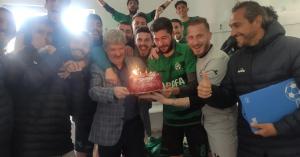 Başkan Mustafa Yenioğlu, hem galibiyet hem de sürpriz doğum günü pastası için futbolculara teşekkür etti.
