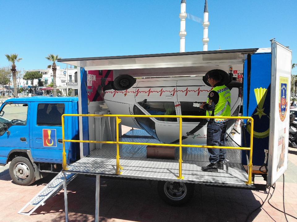 Turgutreis Mahallesinde, 687 yol kullanıcısı ve öğrenciye Emniyet Kemeri Simülasyon Aracında eğitim uygulaması yapıldı.