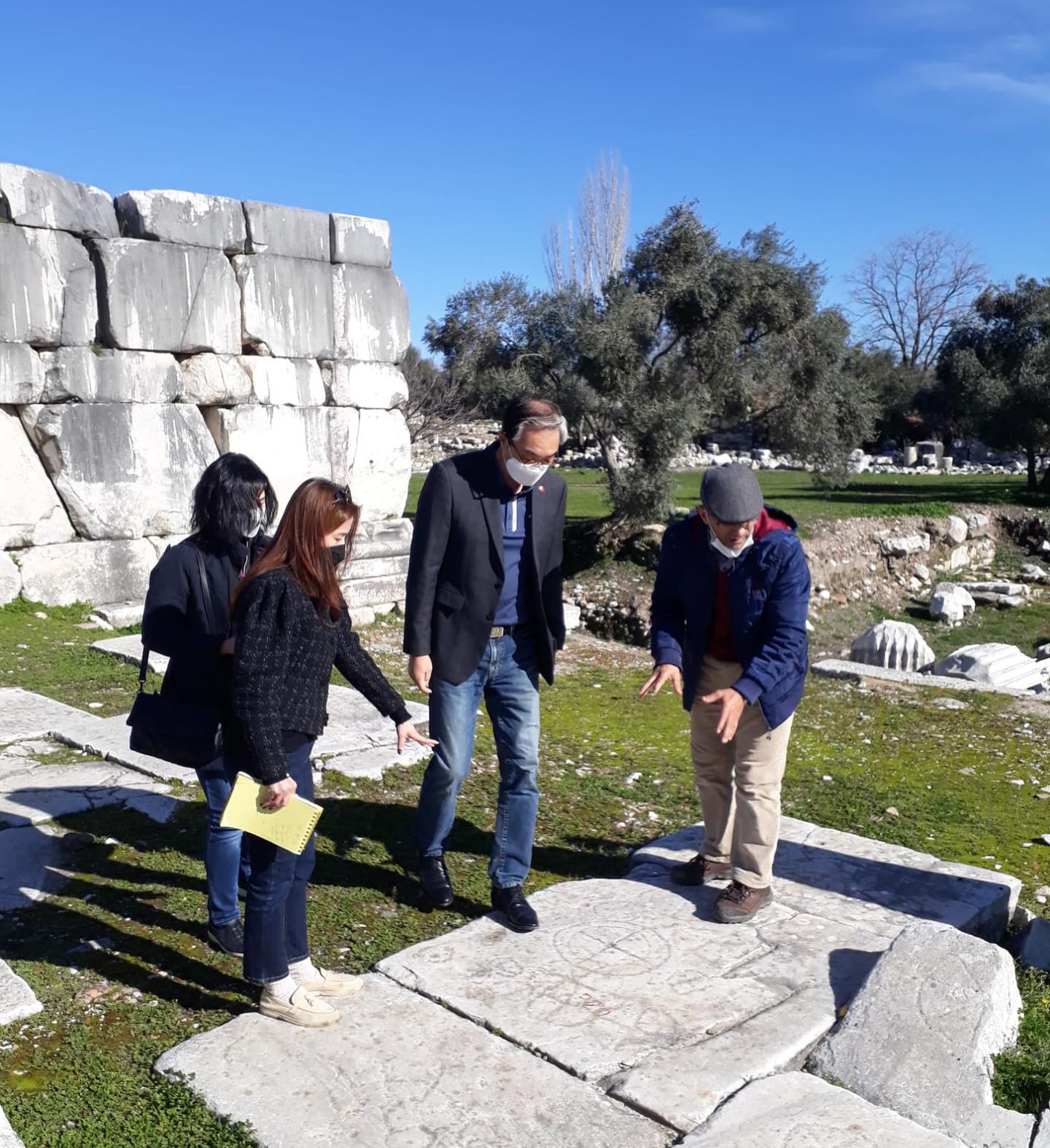 Büyükelçi Won Ik Lee'ye Stratonikeia’yada yapılan çalışmalar hakkında Kazı Başkanı Prof. Dr. Bilal Söğüt bilgi verdi. Tüm dönemlerin bir arada görüldüğünü ve bunun çok olduğunu belirten Büyükelçi Stratonikeia'ya hayran kaldı.