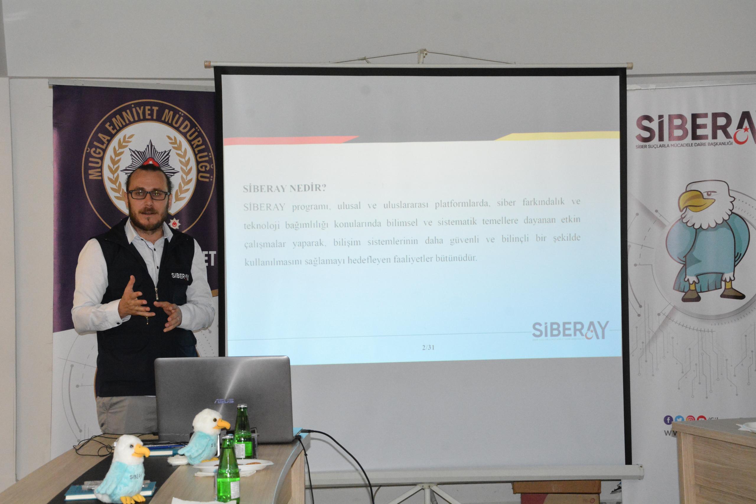 Emniyet Genel Müdürlüğü Siber Suçlarla Mücadele Daire Başkanlığı tarafından çocuklar başta olmak üzere her yaş grubuna yönelik olarak güvenli internet kullanımı, bilinçli sosyal medya kullanımı ve çevrim içi dolandırıcılığa karşı bilinçlendirme, teknolojik aletlerde ekran bağımlılığını önleme, yasa dışı bahis ile mücadele de etkin rol alma faaliyetleri konusunda çalışma yapmak üzere oluşturulan “SİBERAY ” projesi, Muğla’da görev yapan basın mensuplarına tanıtıldı.