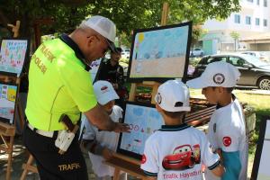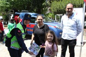 Trafik kurallarına ve yaya geçiş üstünlüğüne dikkat çekilen stantlarda, gerekli araç ve gerekler vatandaşlara tanıtılarak, bilgilendirme yapıldı.