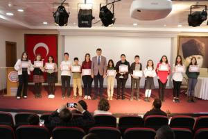 Yarışma sonunda öğrencilere İl Milli Eğitim Şube Müdürleri Yıldız Yılmaz ve Bünyamin Bozoğlan tarafından katılım belgesi takdim edildi.